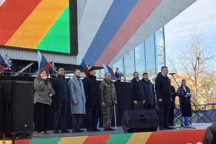 Участников поприветствовали почетные гости: губернатор Иркутской области, председатель законодательного собрания и ветеран СВО. Их слова о важности единства и патриотизма нашли глубокий отклик в сердцах каждого, кто присутствовал на площади.