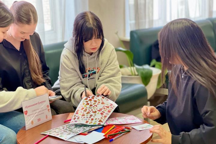 Всю неделю в холле колледжа работала Валентинова почта — студенты оставляли тёплые послания и признания для друзей, одногруппников и преподавателей.