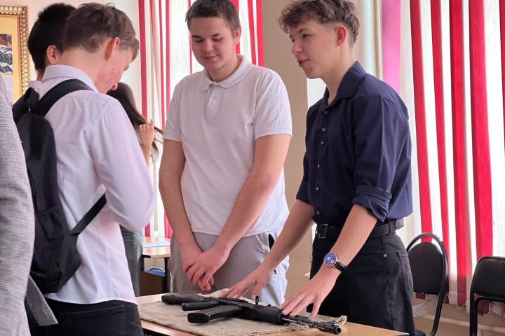• Мастер-класс «Устройство автомата»: под руководством наставников школьники изучили технику безопасной разборки и сборки макета АК
